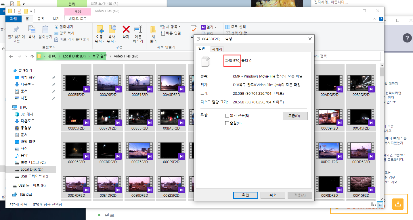 📌 복구 완료 후에는 최종 579개의 파일이 복구되었습니다.