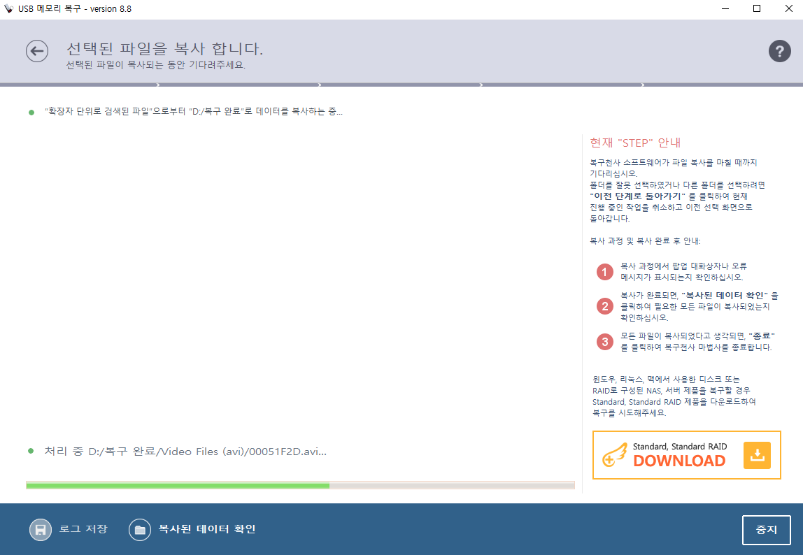 📌 하드디스크로 지워진 항목을 복사하기 시작합니다.