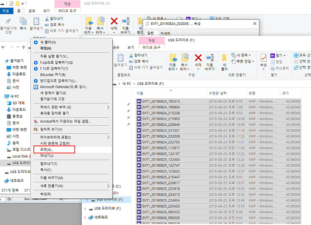 📌 최초 파일은 571개였고 테스트를 위해 포맷을 한 상황입니다.