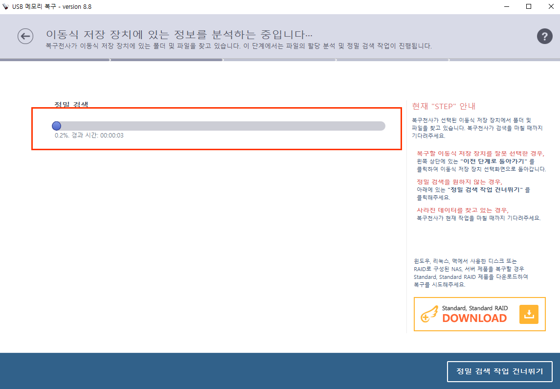 📌 정밀 검색 작업 건너뛰기를 하면 빠르긴 하나 불완전 복구가 됩니다.